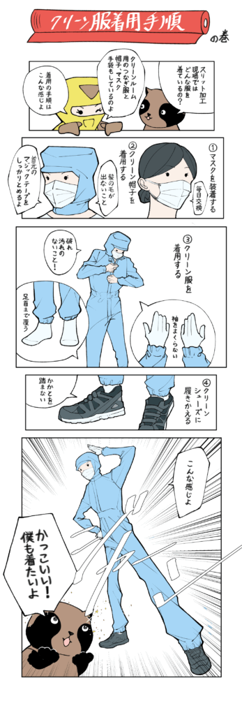 株式会社中村スリッター > すりっとまんが > クリーン服着用手順